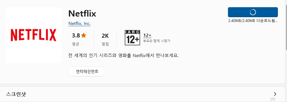 위 다운로드 버튼을 통해서 넷플릭스 PC버전 다운로드 홈페이지 접속하시면 다음과 같은 화면이 나옵니다.